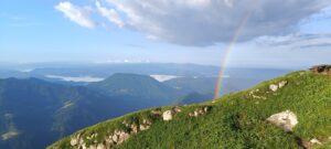 Après avoir traversé un petit ruisseau qui confère a l’ensemble un air déjà montagnard, j’y arrive a 10h30, et rejoint à cet endroit le tracé officiel de la Via Alpina, dont c’est d’ailleurs la fin théorique de la première étape. C’est dire si je carbure. 12 kilomètres avalés en 2h30, c’est plutôt pas mal et ça mérite bien une petite bière. Et en plus ils ont de la pression: la chance sourit aux audacieux.