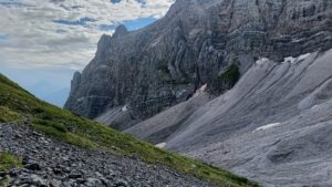 Le repas rapidement pris je fuis, déterminé à laisser derrière moi la dernière montée de la journée, via un court raidillon de 150m. Ce sera fait peu avant 13h30, lorsque j’atteins le col à 2101m situé sous la « Cima Avostanis ».