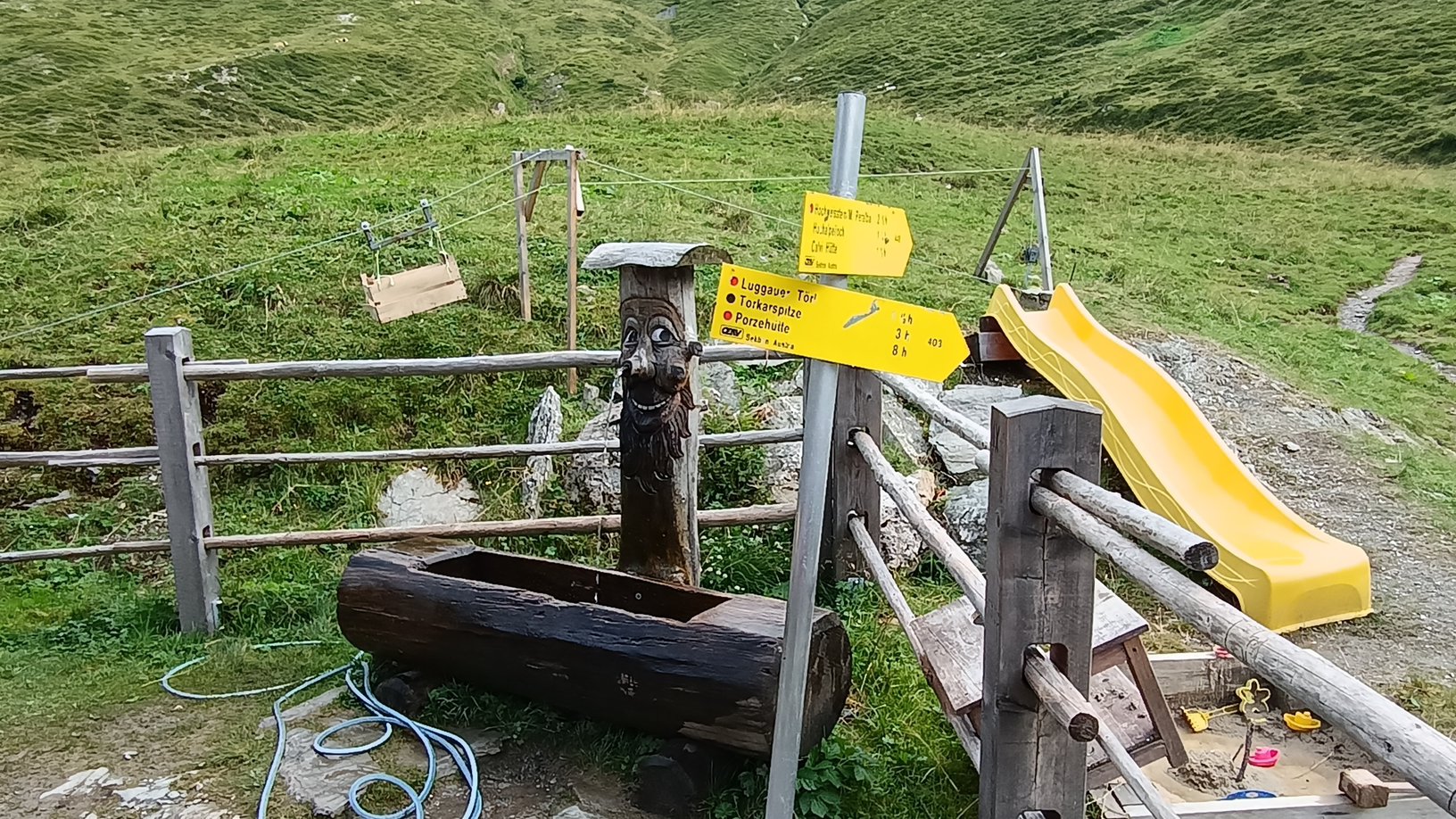 Alors qu’on se rapproche enfin de la fin du repas, j’aperçois par la fenêtre 2 silhouettes qui descendent du col en direction du refuge. Je crois les reconnaître et petit à petit mon intuition se confirme : il s’agit du couple de français que j’avais rencontrés à Straniger Alm. Heureux de voir un échappatoire à cette atmosphère un peu trop oppressante et germanophone à mon goût, je les rejoins dès que possible dehors. Nous passerons un moment à échanger sur notre parcours et notre expérience des derniers jours. J’apprends qu’ils sont étudiants, et si dans un premier temps je les avais un peu pris pour des novices car ils partaient tard dans la journée pour arriver tard, c’est en fait plutôt le contraire. Le gars vit à Grenoble et fait du ski rando l’hiver et de l’alpinisme l’été. Quand je leur annonce vouloir prendre la variante demain car le temps est mauvais et le sentier par les crêtes exposé, ça ne les émeut pas plus que ça : ils passeront par en haut quand même. Comment prendre un coup de vieux… J’ai malheureusement pris trop de temps à écrire ce récit, et faute d’avoir amené un carnet de notes cette année, j’ai oublié leurs prénoms, alors que je m’en souvenais parfaitement il y a encore quelques semaines. Coup de vieux numéro 2. En se quittant on se donne rendez-vous au prochain refuge (Porzehütte), sans que je me doute alors que ce n’est pas là que je dormirai demain.