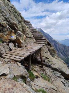 Au matin comme souvent après l’orage c’est un grand ciel bleu, et les conditions sont parfaites pour une journée “plaisir” . En effet suivant la même pratique que les années précédentes, j’ai tracé deux demi-étapes en guise de journée de repos : mon temps étant assez limité , je n’ai pas le luxe de faire des journées « 0 ». Il l’est d’ailleurs encore davantage cette année, puisque je n’ai que 7 jours devant moi, ou au maximum 8, car je dois retrouver ma petite famille au plus tard dimanche pour la suite des vacances. C’est également pour cette raison que Zuzana doit terminer ce soir, afin de rejoindre les enfants qui sont avec les grands-parents, tandis que je continuerai seul encore un bout. Cela nous impose de finir l’étape dans la vallée, à Taufers, ou elle pourra demain attraper un bus vers la gare la plus proche.